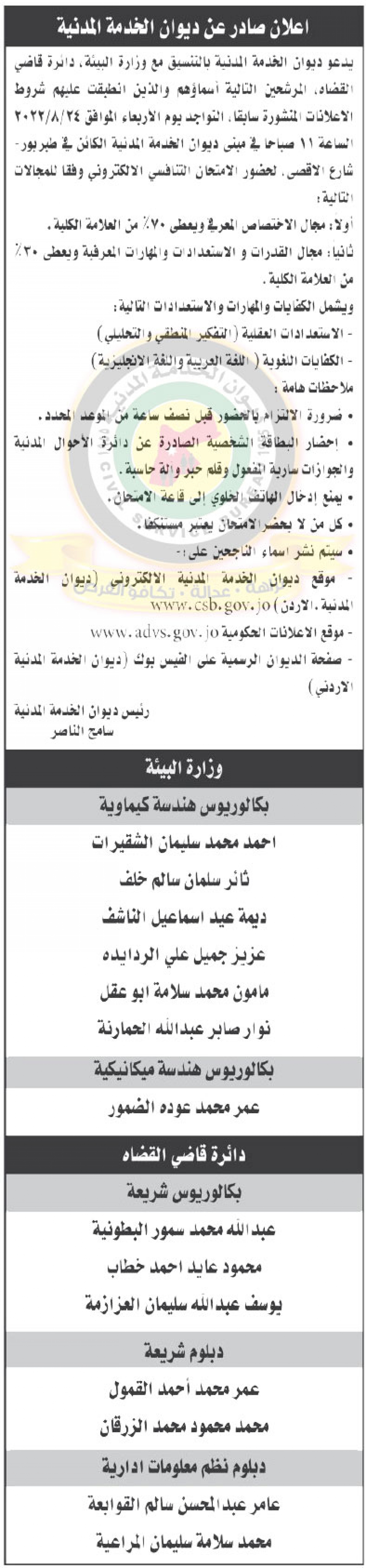 22 الاعلامي-أسماء المدعوين لحضور الامتحان التنافسي الالكتروني يوم الأثنين الموافق 24-8-2022 الساعة 11 صباحا في مبنى ديوان الخدمة المدنية وفقا للإعلان المنشور سابقا