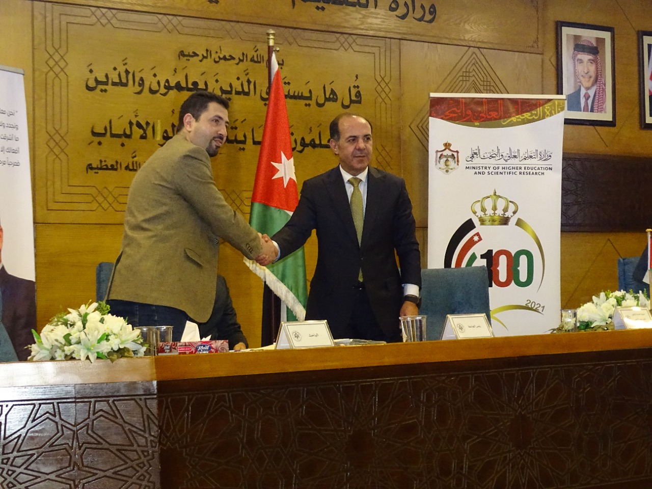 تحت رعاية أمين عام وزارة التعليم العالي والبحث العلمي/نائب رئيس لجنة إدارة صندوق دعم البحث العلمي والابتكار الدكتور مأمون الدبعي، وبحضور رؤساء الجامعات وعمداء البحث العلمي وممثلي الجهات ذات العلاقة تم اليوم الأحد الموافق 19 / 12 / 2021 توقيع اتفاقيات تمويل (40) مشروعاً بحثياً تقدمت بها (18) ثمانية عشر جهة من الجامعات، والمؤسسات، والمراكز البحثية المختلفة، حيث وافقت لجنة إدارة الصندوق برئاسة معالي وزير التعليم العالي والبحث العلمي الدكتور وجيه عويس على تقديم الدعم المالي لـ (40) مشروعاً بقيمة إجمالية بلغت (1,825,481) مليون وثمانمائة وخمسة وعشرون ألفاً وأربعمائة وواحد وثمانون ديناراً أردنياً، ضمن الطلبات التفصيلية للدورة البحثية لعام 2021، فيما جاء توزيع المشاريع على القطاعات على النحو الآتي: (14) مشروع لقطاع العلوم الطبية والصيدلانية، و(10) مشاريع لقطاع العلوم الزراعية والبيطرية، و(5) مشاريع لقطاع العلوم الإنسانية والاجتماعية والاقتصادية، ومشروع لقطاع العلوم الهندسية والتكنولوجيا النانوية والحيوية، و(6) مشاريع لقطاع علوم المياه والبيئة، ومشروع واحد لقطاع العلوم الأساسية، و(3) مشاريع لقطاع علوم الاتصالات وتكنولوجيا المعلومات.
