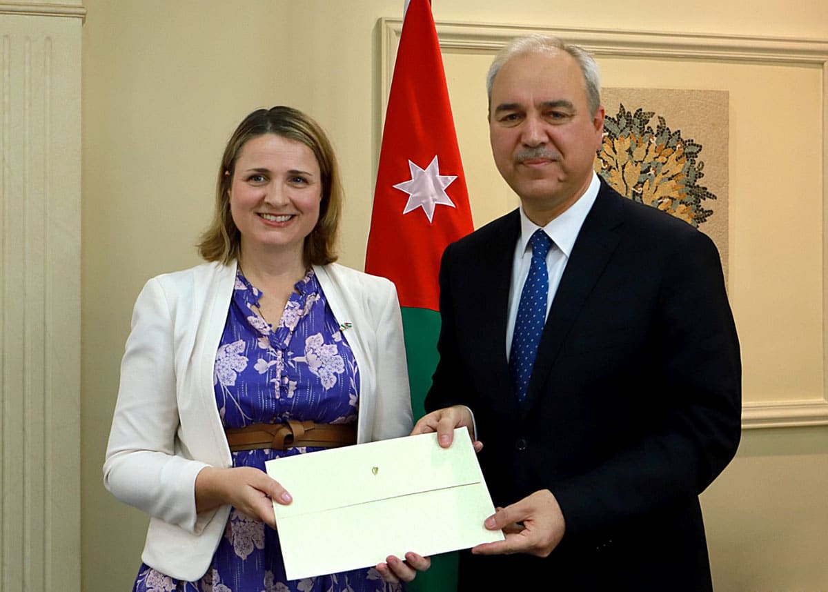 22 الاعلامي- تسلم أمين عام وزارة الخارجية وشؤون المغتربين بالوكالة السفير حازم الخطيب، اليوم الخميس، نسخة من أوراق اعتماد سفيرة جمهورية ايرلندا الصديقة ماريان بولجر، سفيرا معتمدا مقيما لدى المملكة.