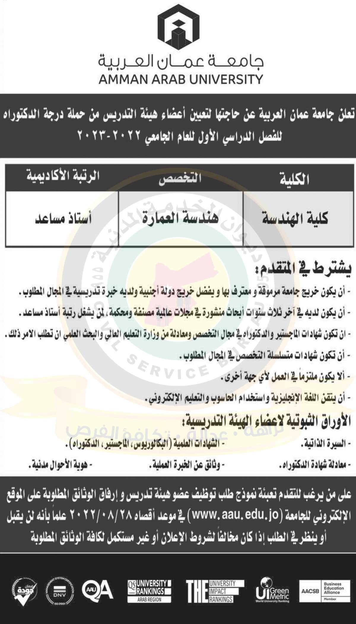 22 الاعلامي- اعلان وظائف شاغرة لتعيين صادر عن جامعة عمان العربية