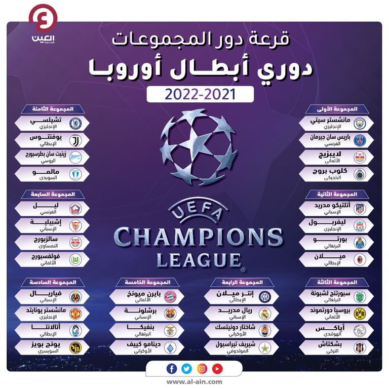 المجموعة الثامنة : باريس سان جيرمان الفرنسي – يوفنتوس الإيطالي – بنفيكا البرتغالي.