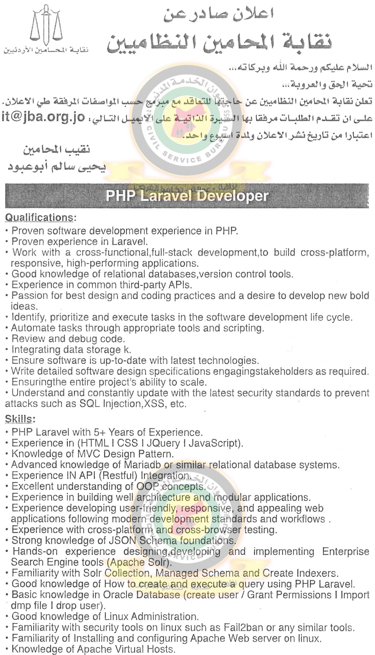22 الاعلامي- اعلان توظيف مبرمج صادر عن نقابة المحاميين النظاميين