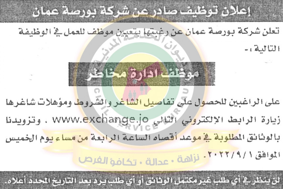 اعلان توظيف موظف ادارة مخاطرعن شركة بورصة عمان