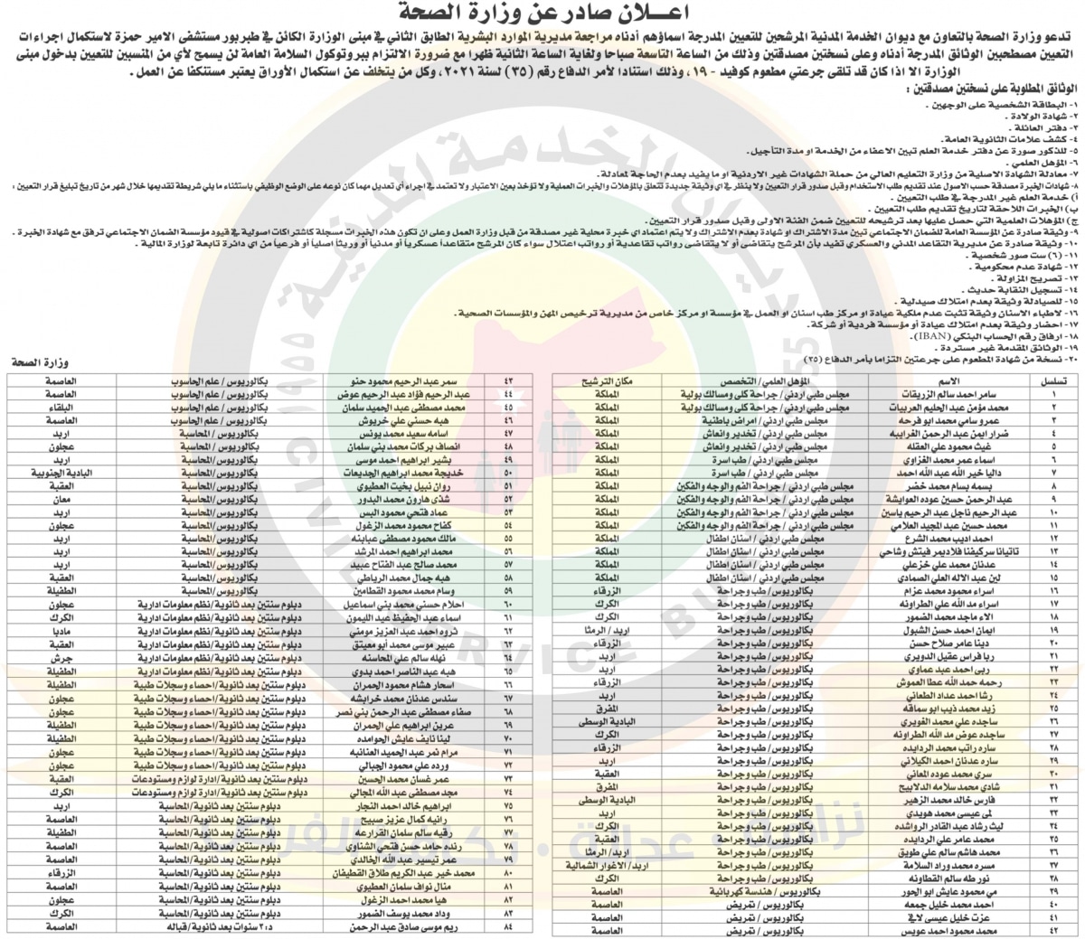 اعلان لاستكمال اجراءات التعيين صادر عن وزارة الصحة