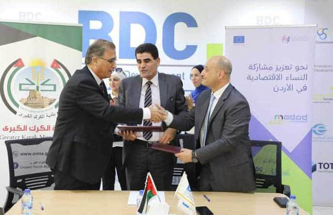 22 الاعلامي - (بترا)- محمد العساسفة- وقع رئيس بلدية الكرك الكبرى المهندس محمد المعايطة ومدير مركز تطوير الأعمال غالب حجازي، اليوم السبت، مذكرة تفاهم ضمن مشروع تعزيز مشاركة النساء الاقتصادية في الأردن (مدد) الذي ينفذ بتمويل ودعم من الصندوق الائتماني الإقليمي للاتحاد الأوروبي.