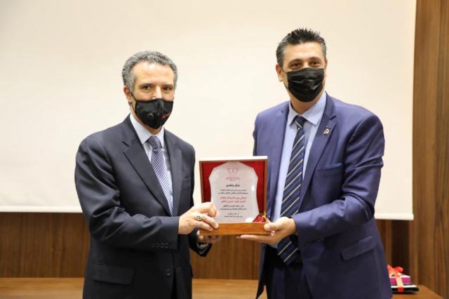 كما قدم عميد معهد فن الفسيفساء والترميم الدكتور أحمد العمايرة، دروعاً تذكارية مصنوعة من الفسيفساء للوزير الفايز، وأمين عام الوزارة الدكتور عماد حجازين، ومدير الآثار الدكتور البلعاوي، ومدير عام هيئة تنشيط السياحة الدكتور عبدالرزاق عربيات، ومستشار الوزير هشام العبادي.