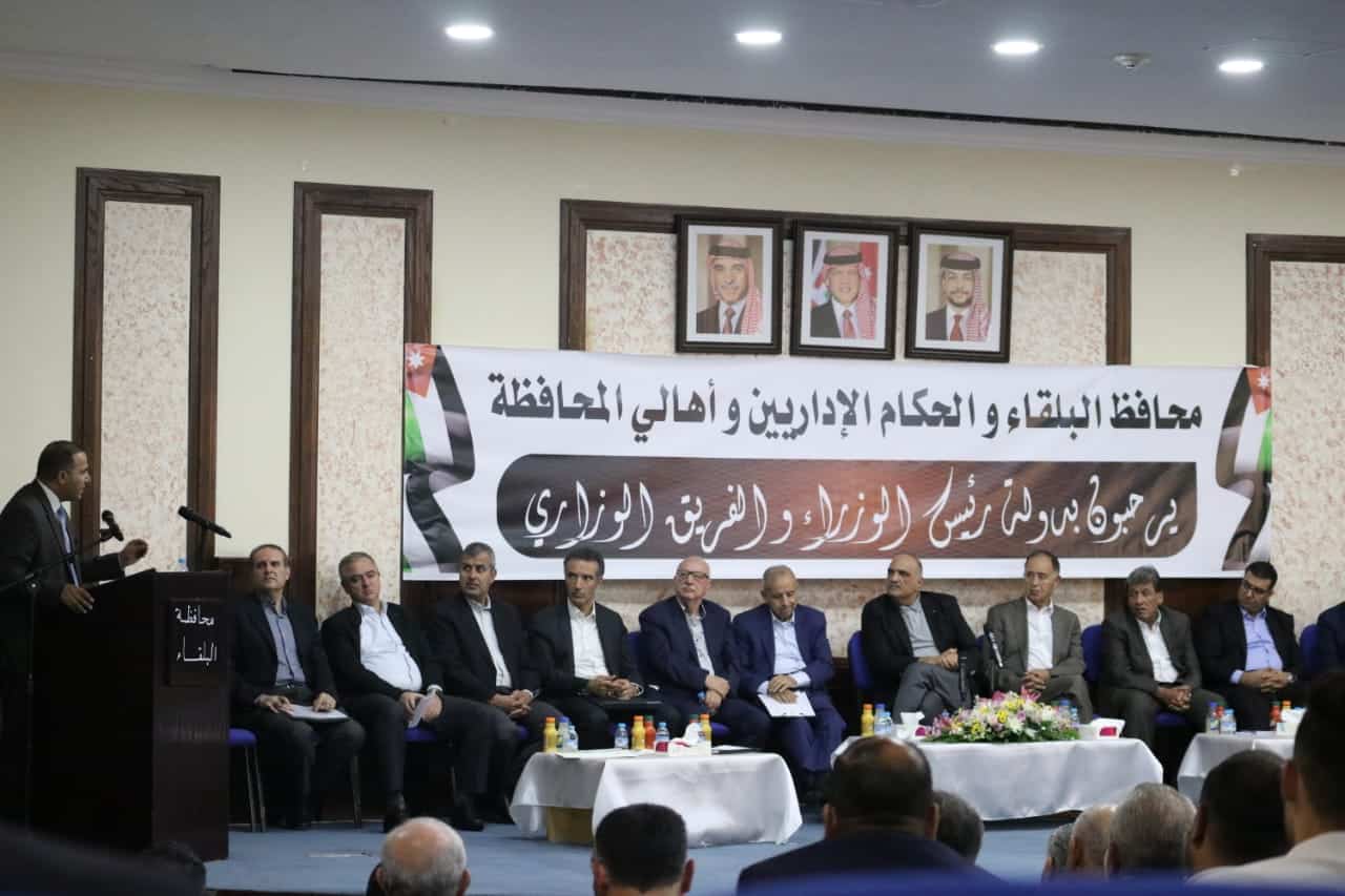 وقال رئيس الوزراء: "تشرفنا بصحبة جلالة الملك وسمو ولي العهد بزيارة محافظة البلقاء الأسبوع الماضي، وأمرنا جلالته بالالتقاء مع وجهاء وأهالي المحافظة للاستماع إلى أبرز المطالب والاحتياجات ولنقيم سويا ما نستطيع تلبيته من مطالب تسهم في تعزيز التنمية في المحافظة" .