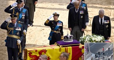 ألقى أفراد العائلة الملكية التحية عند مرورهم على النصب التذكاري في وايتهول بعد ظهر اليوم في طريقهم من قصر باكنجهام إلى قاعة وستمنستر، حيث ستستقر الملكة في الولاية حتى جنازتها يوم الاثنين المقبل.