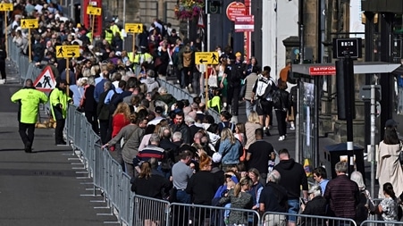 ونقلت وسائل الاعلام البريطانية عن وزارة الثقافة اليوم السبت، إنها ستوقف دخول المودعين في طابور المنتظرين إذا كان الإقبال شديدا، لأن تدفق الكثيرين يعني أن الناس سيضطرون للوقوف في الطابور لمدة 24 ساعة على الأقل للوصول إلى مكان الجثمان.