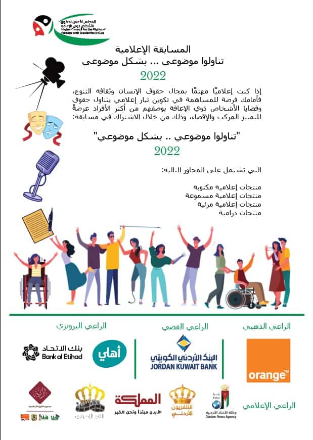 22 الإعلامي- برعاية سمو الأمير مرعد بن رعد، رئيس المجلس الأعلى لحقوق الأشخاص ذوي الإعاقة، أعلن المجلس للعام الثاني على التوالي عن مسابقته الإعلامية "تناولوا موضوعي بشكل موضوعي".