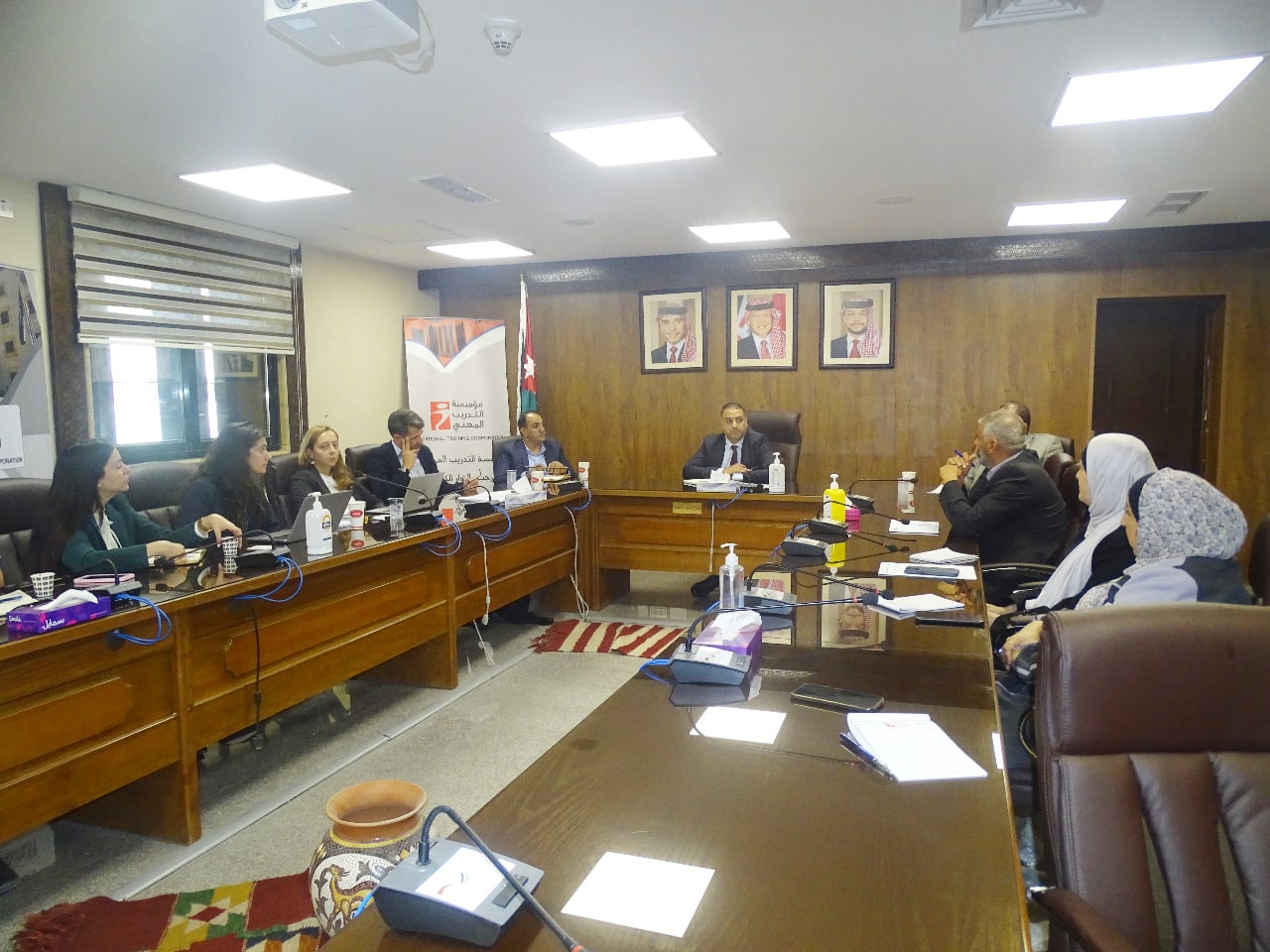حيث رحب الغرايبه بالوفد الزائر وقدم لهم شرحاً حول المحاور الاستراتيجية للمؤسّسة 2022-2024 والتي تتضمن تطوير البرامج التدريبية والمدربين بما يتوافق مع التكنولوجيا الحديثة ومهارات المستقبل واحتياجات سوق العمل المحلي والدولي، والتحول الرقمي وأتمتة المنظومة التدريبية، ورفع كفاءة المدربين ليكونوا قادرين على مواكبة التطورات التكنولوجية واحتياجات سوق العمل بالقطاع الخاص، واستحداث مراكز للتميز بالشراكة مع القطاع الخاص والجامعات الحكومية والخاصة والجهات المانحة.