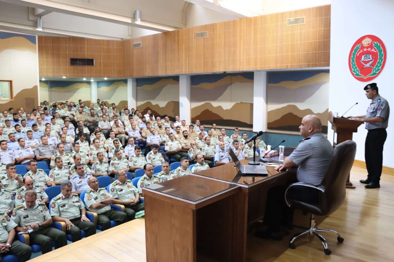 22 الإعلامي- ألقى قائد قوات الدرك العميد الركن "محمد أمين" المعايطة، اليوم الخميس، في كلية القيادة والأركان الملكية الأردنية، محاضرة بعنوان "دور قوات الدرك في المحافظة على الأمن الداخلي والتعاون مع القوات المسلحة والأجهزة الأمنية الأخرى" للدارسين في دورة الركن 63 المشتركة 27 والتي تضم عدداً من ضباط الدول الشقيقة والصديقة، بحضور آمر الكلية العميد الركن ظاهر مقدادي وأعضاء الهيئة التدريسية.