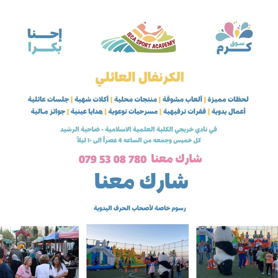 ومن جانبها أكدت السيدة سمر أبو هنطش المدير التنفيذي لكرنفال احنا بكرا أن هذا الكرنفال يعد المنصة المميزة للأسرة الأردنية وأن سوق كرم سيتميز من كافة الجوانب، وسيعتبر السوق الأهم لما يقدمه من دعم لأصحاب الحرف اليدوية والمشاريع الإنتاجية والشركات الصغيرة والمتوسطة، بالإضافة إلى أن إدارة اللجنة المنظمة ستقدم العديد من الجلسات التدريبية والحوارية معهم، فضلاً عن كونه منصة تسويقية هامة للشركات الوطنية التي تقدم خصومات خاصة للزوار وتقوم بالتعريف بالمنتج الوطني المميز.