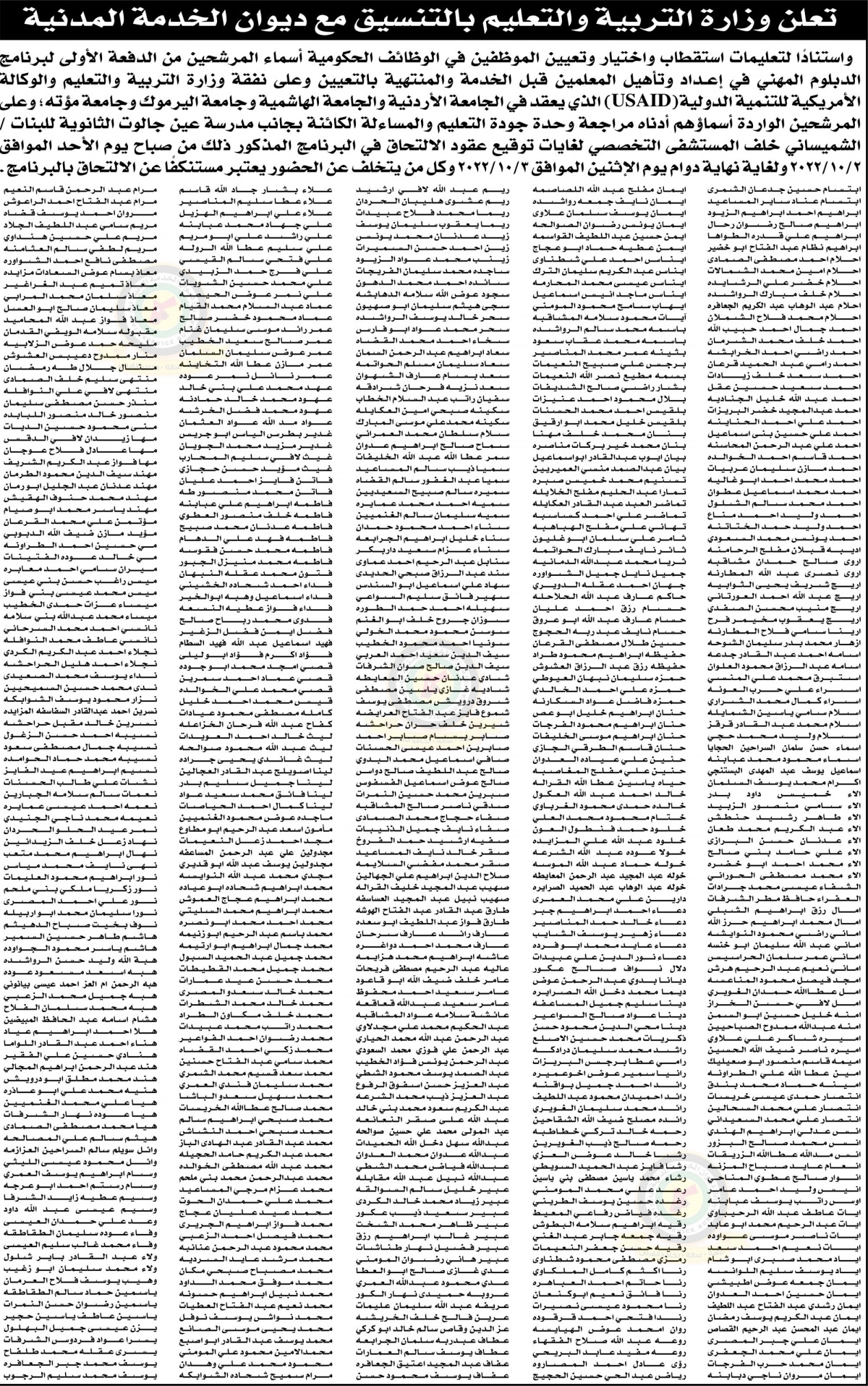 22 الاعلامي- اعلان صادر عن وزارة التربية والتعليم بالتنسيق مع ديوان الخدمة المدنية بخصوص إعداد وتأهيل المعلمين المنتهي بالتعيين