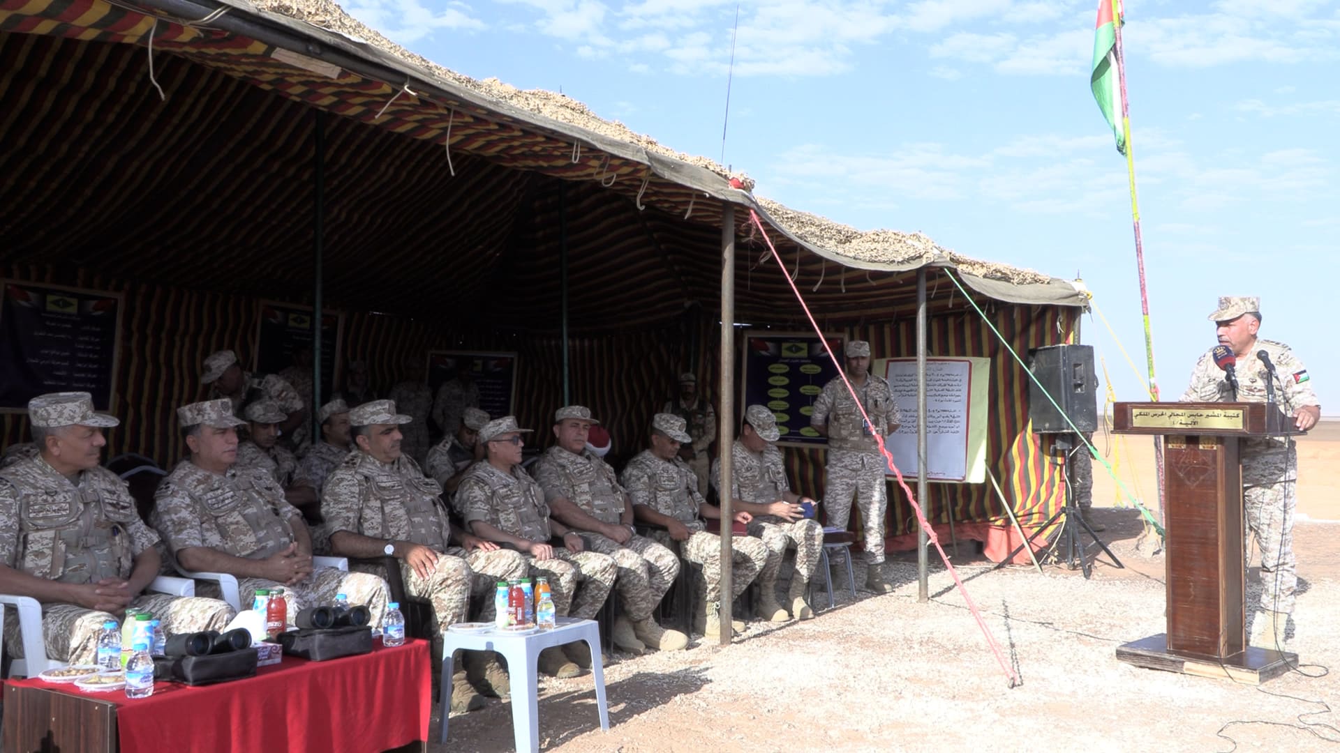 واستمع العميد الركن شديفات إلى إيجاز قدمه قائد لواء الشهيد وصفي التل الآلي الثاني عن التمرين الذي بُني على فرضيات تحاكي التهديدات الأمنية المحتملة في المنطقة، بهدف تدريب المشاركين على مختلف المستويات العملياتية واللوجستية والتدريبية وكيفية التخطيط والتنسيق والتنفيذ وصولاً للأهداف المرجوة.