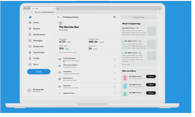 أطلقت شركة تويتر، علامة تبويب جديدة عبر منصتها الرقمية خاصة بـ"الحسابات الاحترافية" (Professional Accounts) لمنح المستخدمين مزيدًا من أدوات التحكم لإدارة تجربتهم بشكل أفضل.