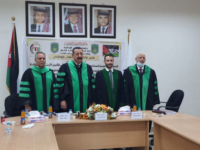كما اجريت في جامعة عجلون الوطنية بكلية الحقوق /قسم القانون مناقشة اربع رسائل ماجستير