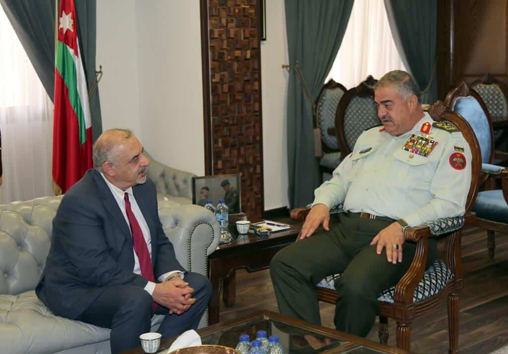 22 الإعلامي- استقبل رئيس هيئة الأركان المشتركة، اللواء الركن يوسف أحمد الحنيطي، اليوم الخميس، في مكتبه بالقيادة العامة للقوات المسلحة الأردنية ــ الجيش العربي، رئيس الجامعة الهاشمية الدكتور فواز العبد الحق الزبون.