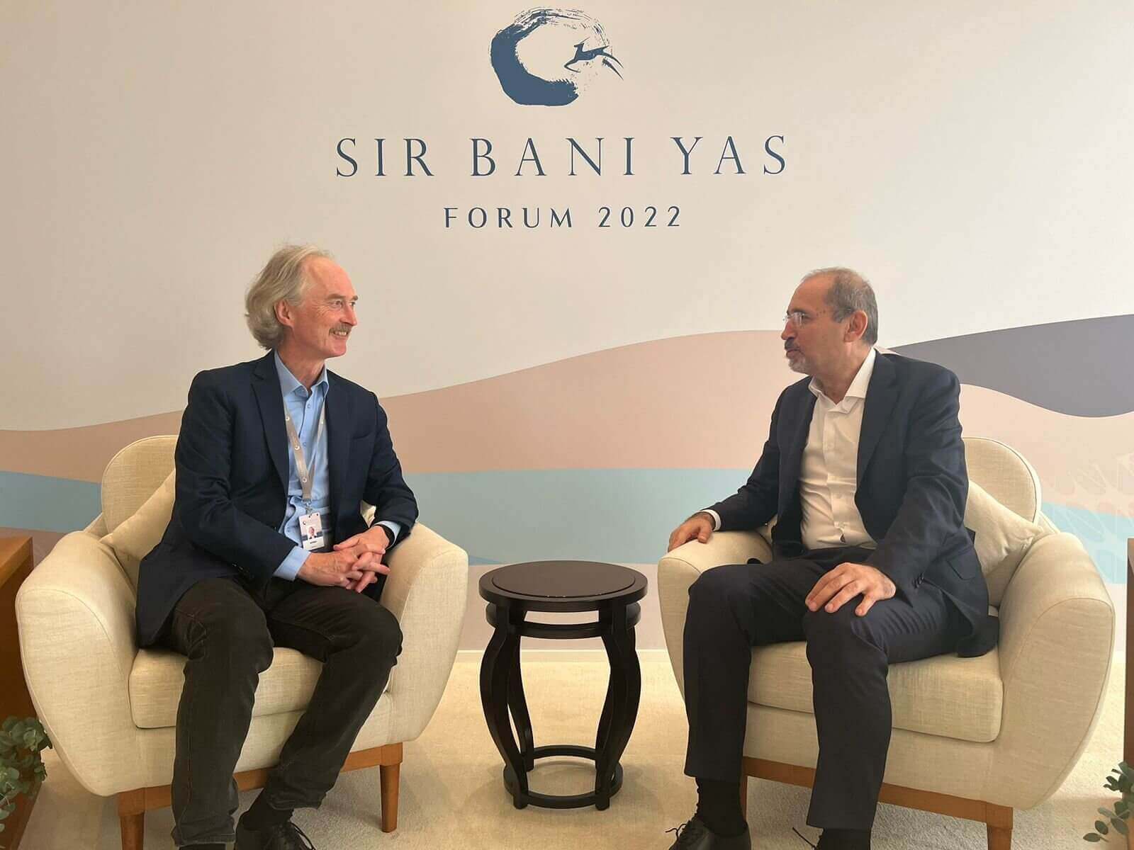 وفي اجتماع مع المبعوث الأممي الخاص لسوريا غير بيدرسون، تابع الصفدي نتائج المحادثات التي عقدها وبيدرسون في عمّان حول جهود التوصل لحل سياسي ينهي الأزمة السورية.