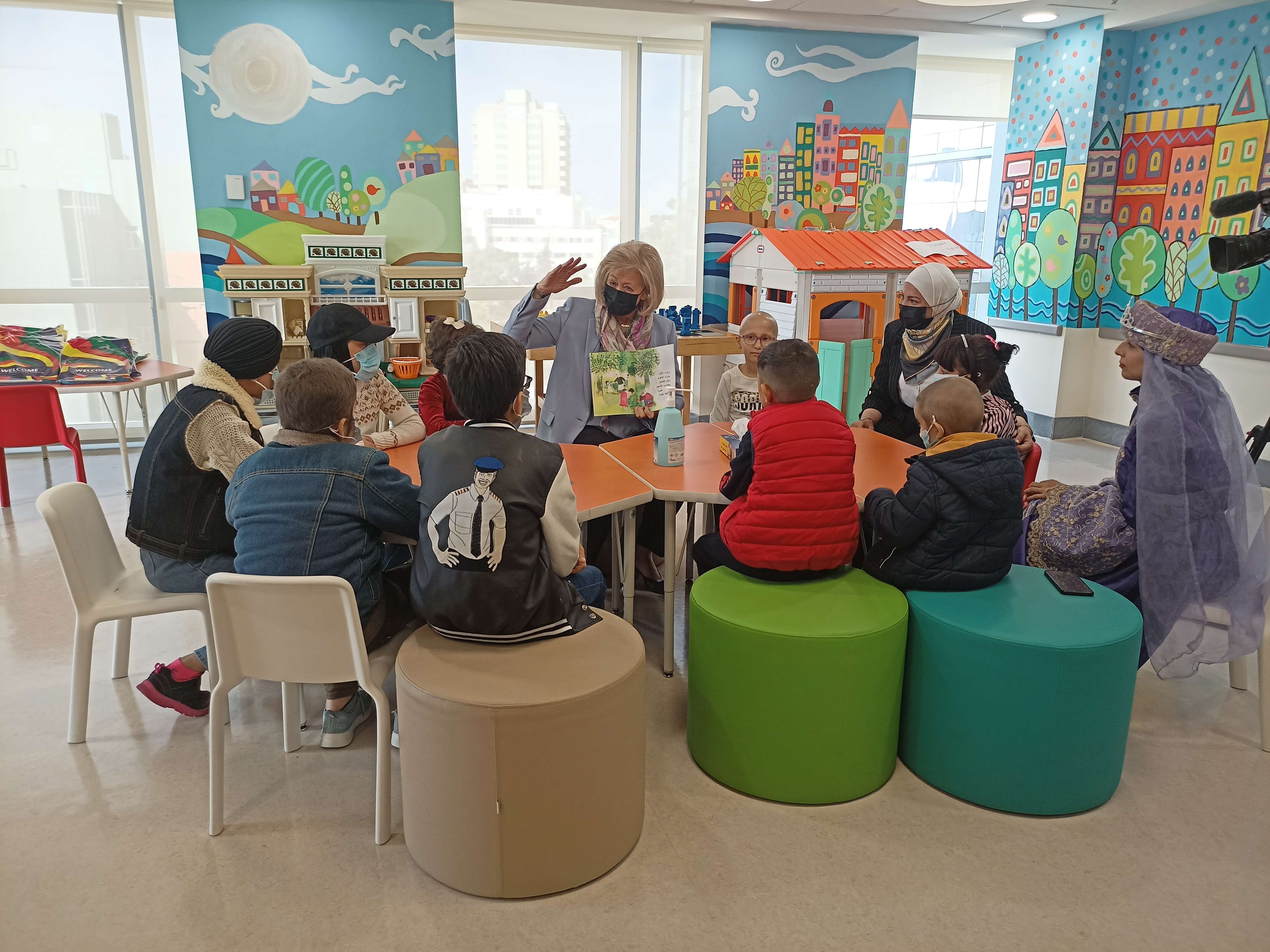 وعقب توقيع الاتفاقية، سردت وزيرة الثقافة قصة قصيرة بعنوان "الأطفال يعانقون الأشجار" على أطفال مركز الحسين للسرطان، ووزعت عليهم نسخا منها.
