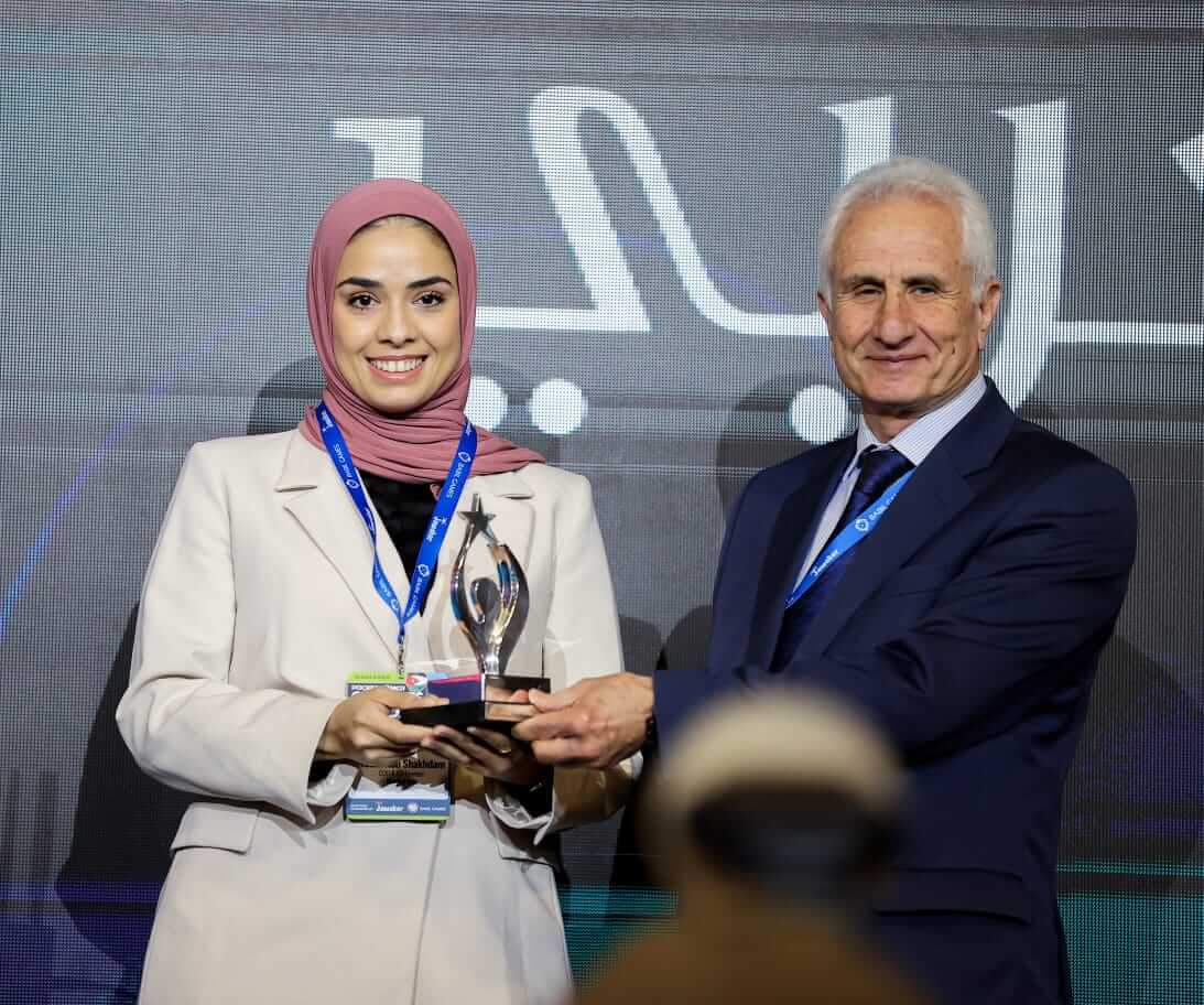 وسلم وزير التربية والتعليم والتعليم العالي السابق الدكتور وجيه عويس، الفائزة جائزتها والذي تقوم فكرة مشروعها على عالم يتمتع فيه كل طفل أصم بإمكانية الوصول إلى التعليم من خلال ابتكار منتجات وأدوات تعليمية مدعمة بالتكنولوجيا؛ بهدف الحد من الأمية في حياة الأشخاص ذوي الإعاقة السمعية، وذلك باستهداف الأطفال الصم وعائلاتهم من خلال أدوات وحلول تعليمية تفاعلية باستعمال تقنية الواقع المعزز ولغة الإشارة العربية، حيث سيحصل المشروع الفائز على دعم مالي قيمته 50 ألف دولار لتطويره.
