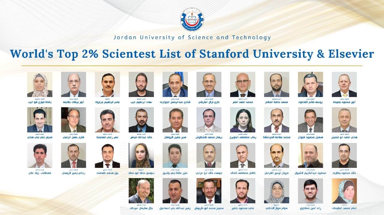 22 الإعلامي- 6 كانون الأول- كرمت جامعة العلوم والتكنولوجيا الأردنية اليوم الثلاثاء باحثيها من أعضاء الهيئة التدريسية الذين صُنّفوا ضمن أفضل 2 بالمئة من الباحثين في العالم وأكثرهم تأثيرًا حسب تصنيف جامعة ستانفورد الأمريكية وقاعدة بيانات السيفير، وذلك تقديرًا لجهودهم العلمية والبحثية في كافة المجالات، ولما قدموه من أبحاث علمية متميزة منشورة في المجلات العلمية والبحثية العالمية.