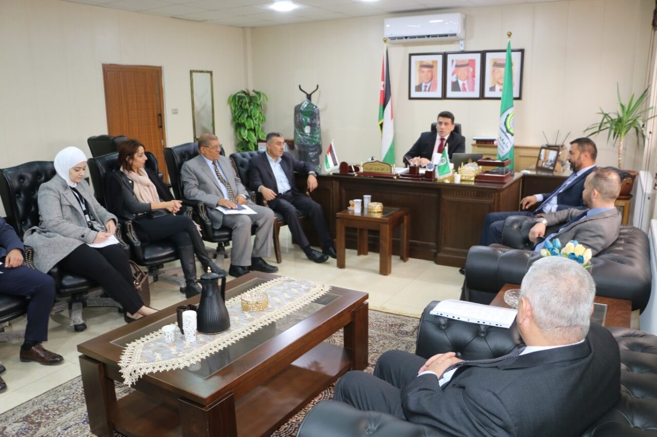 ورحب الدكتور الحوامدة بالوفد الضيف، مقدمًا نبذة عن نشأة الجامعة ودورها في خدمة المجتمع المحلي والنهج الذي تتعبه في كافة الوسائل لتعزيز وتطوير الشراكات مع المؤسسات الوطنية، لافتًا إلى ما حققته العديد من الإنجازات على الصعيد الوطني ورفد سوق العمل بكوادر بشرية مؤهلة ومهيأة، مبديًا استعداد الجامعة للتعاون مع المؤسسة لفتح حاضنة لريادة الأعمال ودعم المشاريع الريادية الصغيرة في رحابها وذلك لموقعها الاستراتيجي المميز الذي يربط الجامعة بست محافظات لتكون مركزًا لمحافظات الشمال في هذا المجال.