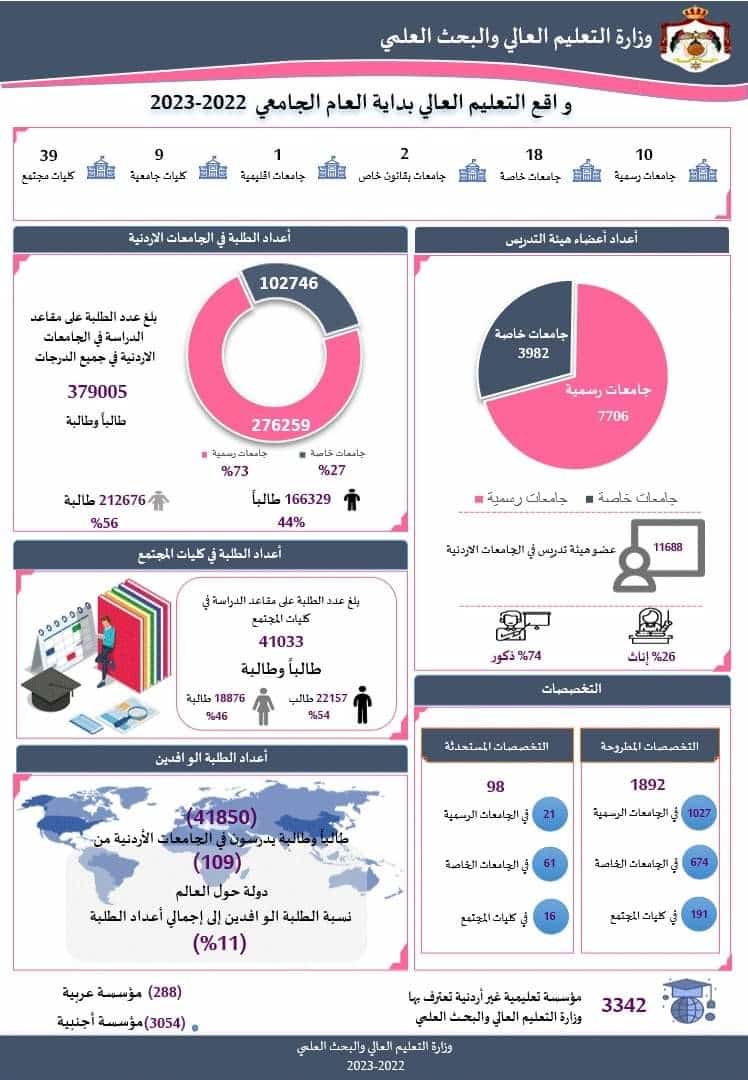التعليم العالي: تطلق انفوجرافك جديد يتضمن معلومات هامة عن واقع التعليم العالي في الأردن