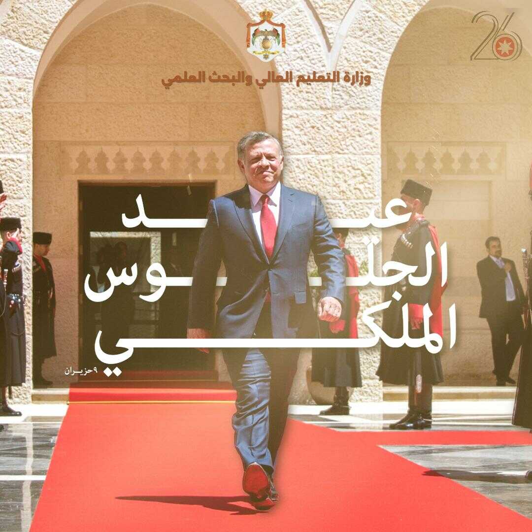 أسرة وزارة التعليم العالي والبحث العلمي تهنئ بمناسبة عيد الجلوس الملكي السادس والعشرين وذكرى الثورة العربية الكبرى ويوم الجيش