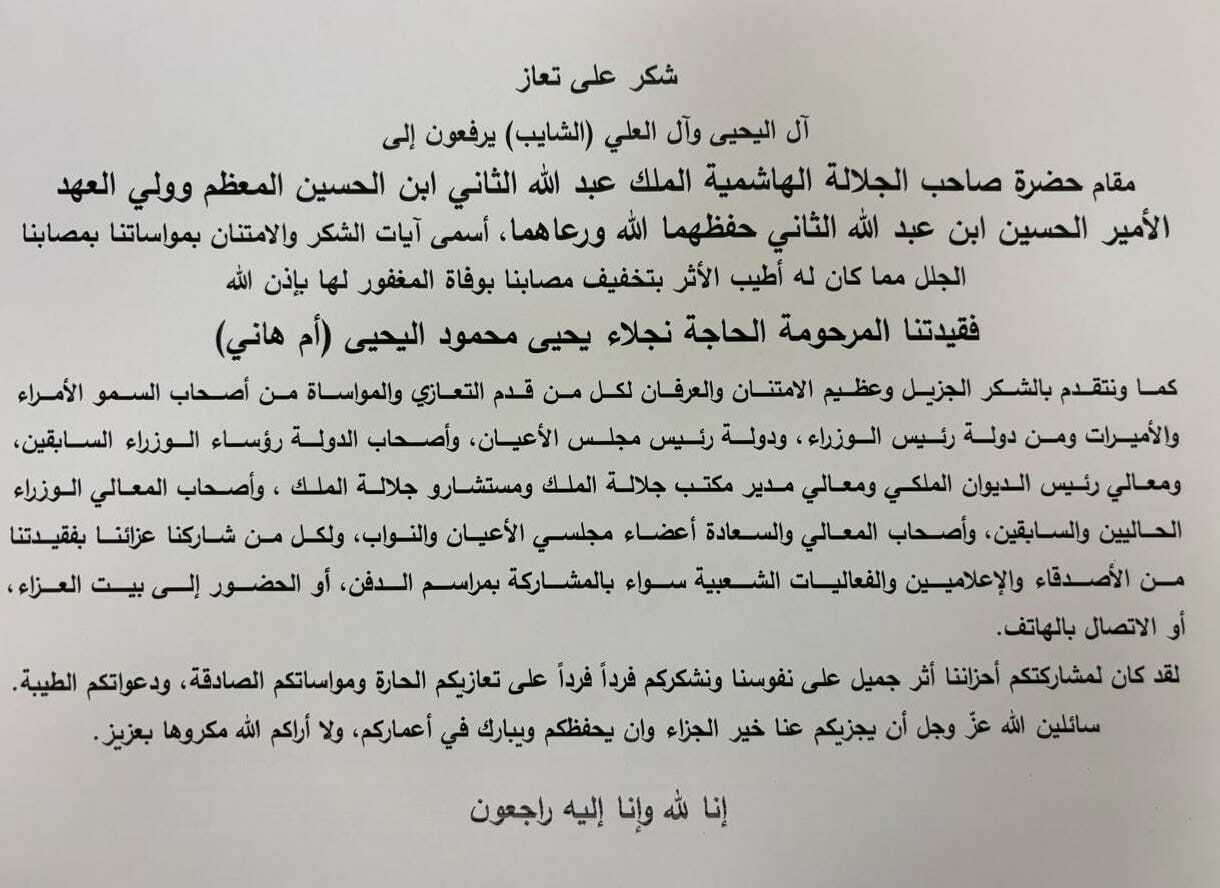 بيان تهنئة صادر عن ديوان أبناء الكرك في عمّان بمناسبة عيد الاستقلال التاسع والسبعين للمملكة الأردنية الهاشمية