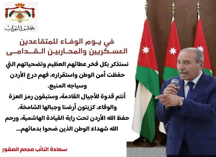 النائب مجحم الصقور يتقدم بالتهنئة والتبريك للمتقاعدين العسكريين والمحاربين القدامى