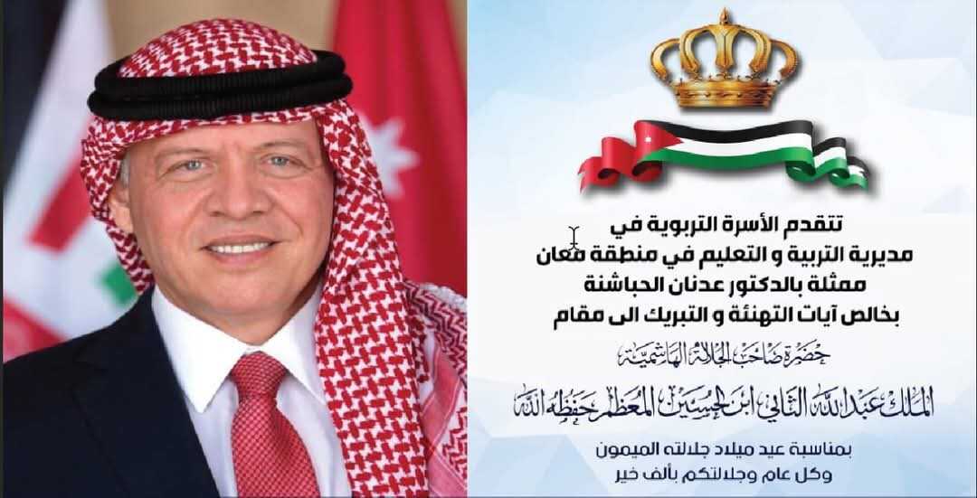 الأسرة التربوية في تربية معان تهنئ جلالة الملك عبدالله الثاني بن الحسين المعظم بعيد ميلاده الثالث و الستون