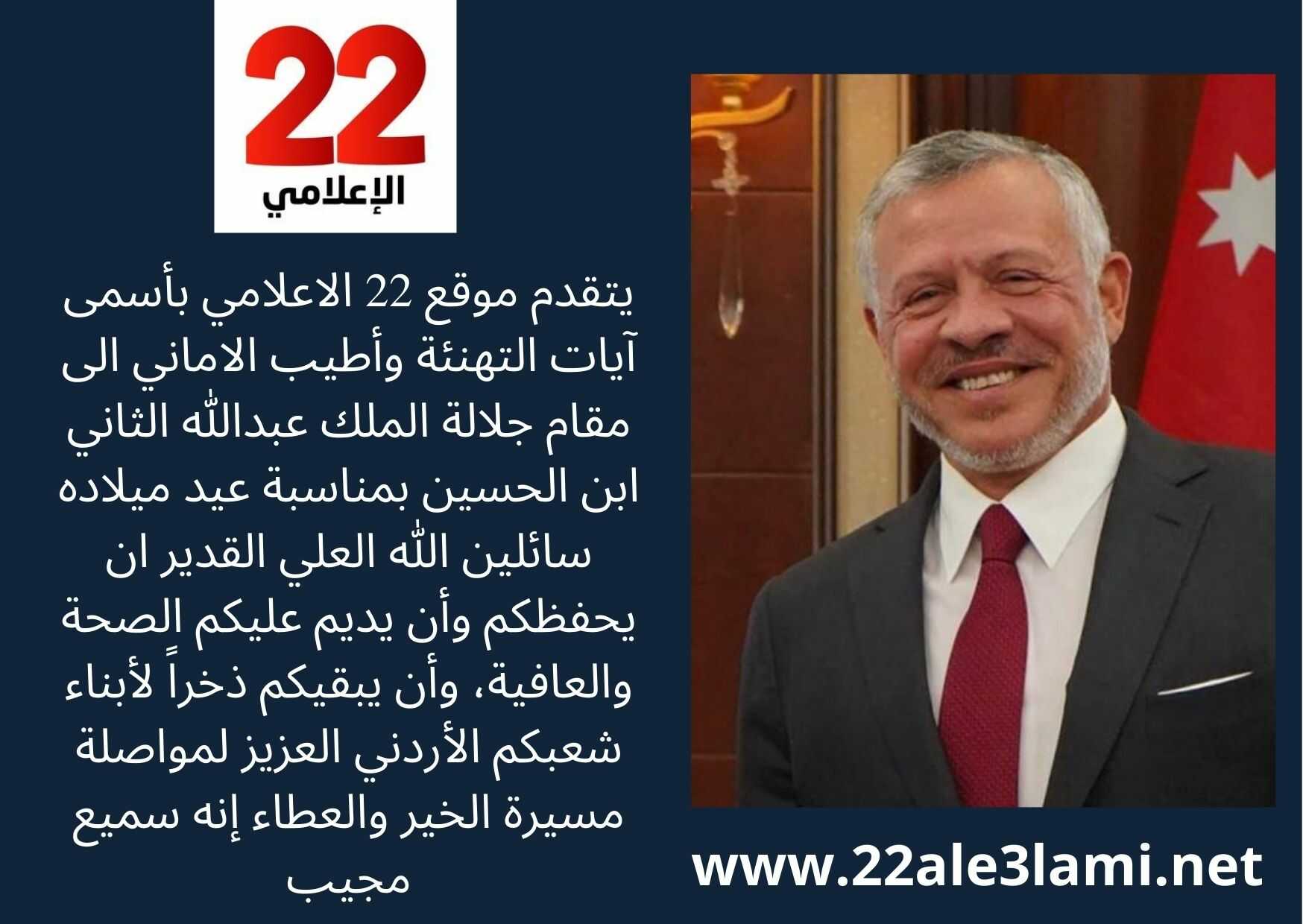 اسرة موقع 22 الاعلامي تهنئ بعيد ميلاد جلالة الملك