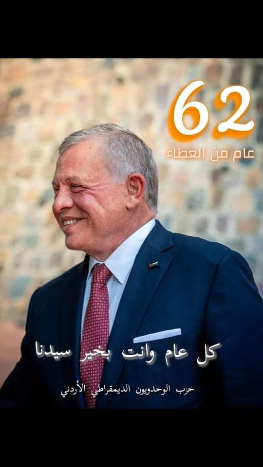 حزب الوحدويون الديمقراطي الاردني يهنئ جلالة الملك بمناسبةعيد ميلاده الميمون