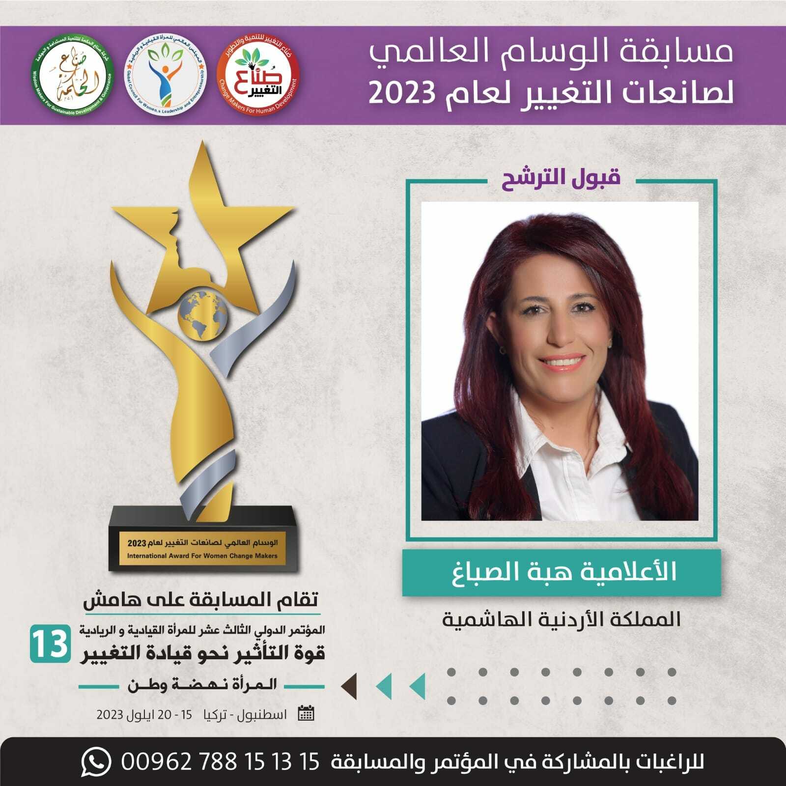 قبول ترشح الاعلامية هبة الصباغ للحصول على وسام صانعات التغيير لعام 2023