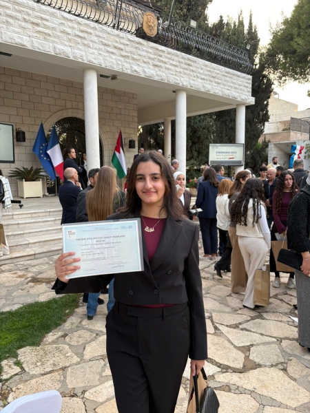 السفير الفرنسي في عمان يكرم الطالبة لمار الراميني لتفوقها بامتحان اللغة الفرنسية المدرسي
