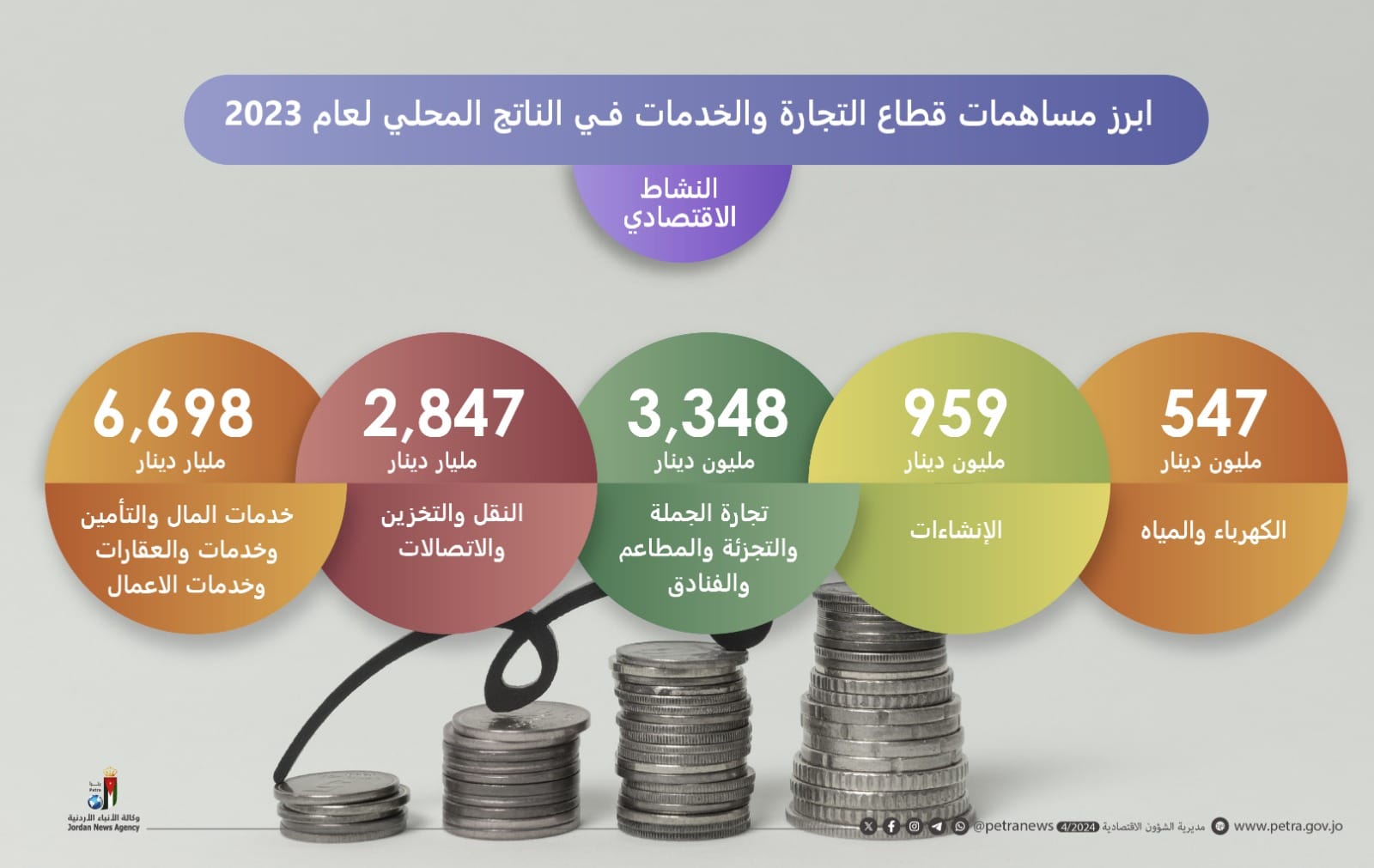 ارتفاع الناتج المحلي الإجمالي بالأسعار الجارية 4.4 % في 2023