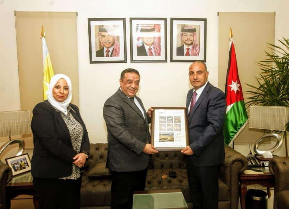 الداوود يسلم أمين عمان نسخة من الاصدار الاول الخاص بطوابع مدينة عمان القديمة