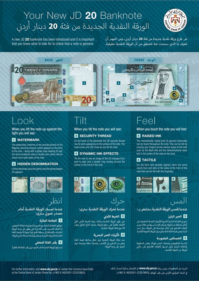 المركزي يطرح الإصدار الخامس لفئة الـ20 دينارا