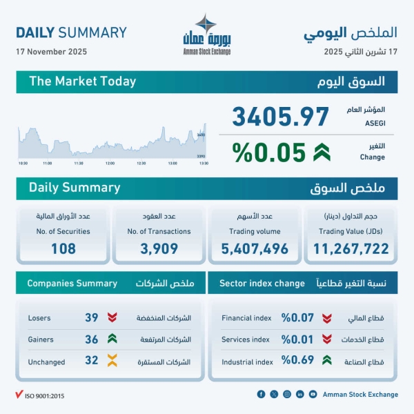 بورصة عمان تغلق تداولاتها على ارتفاع