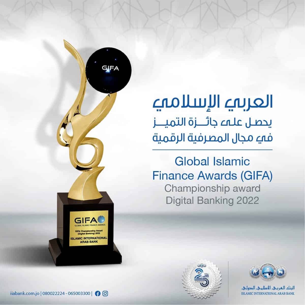 العربي الإسلامي يحصل على جائزة التميز في مجال المصرفية الرقمية 2022
