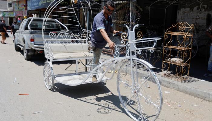 خردة المنازل تتحول لقطع فنية .. حداد يبدع في غزة .. صور