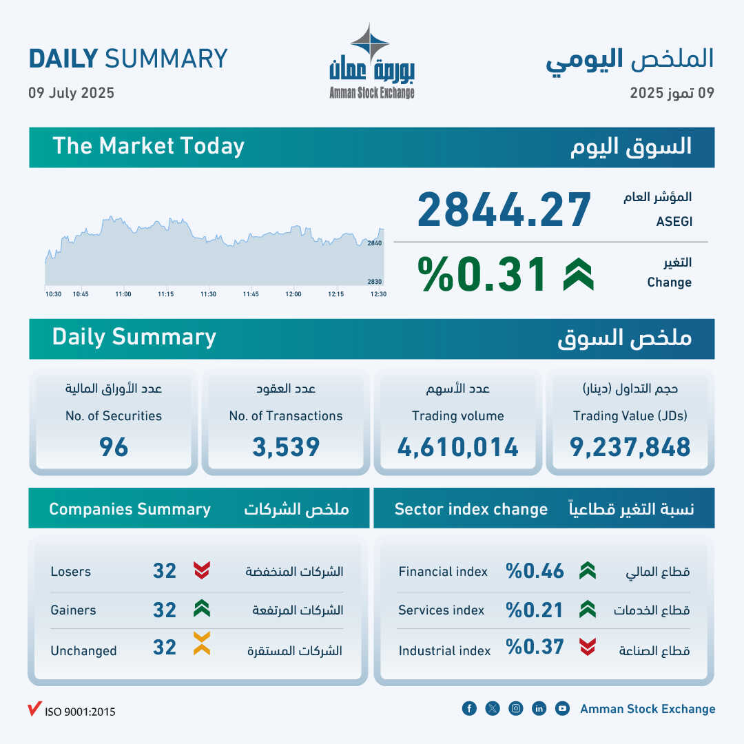 بورصة عمان تغلق تداولاتها على ارتفاع