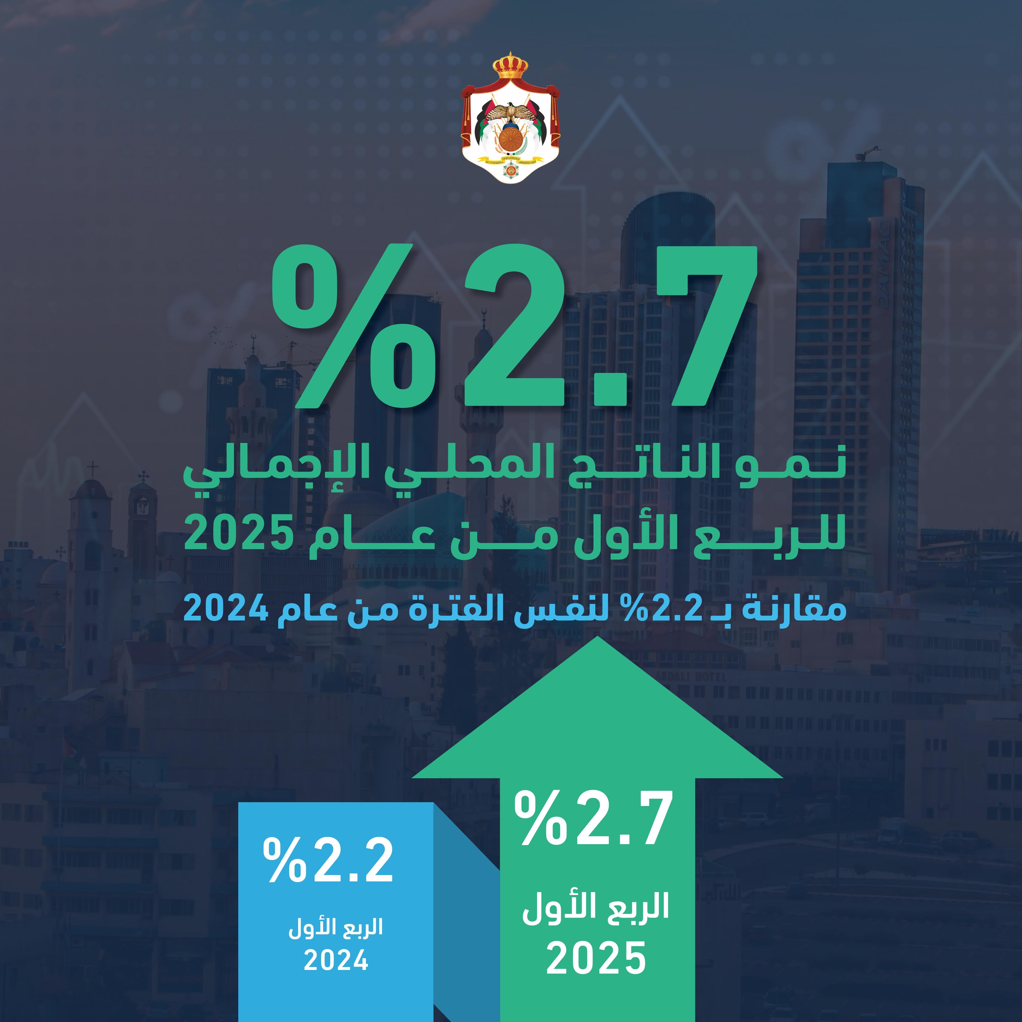 ارتفاع نمو النَّاتج المحلي الإجمالي إلى 2.7 % بالربع الأول من 2025 مقارنة مع 2.2% للفترة ذاتها من العام الماضي