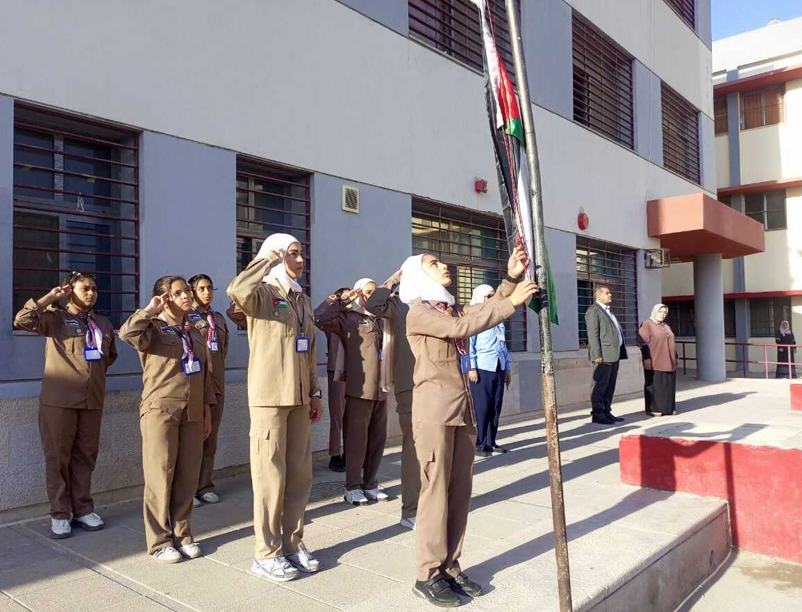 الفتينات يشارك الطابور الصباحي حدادًا على وفاة المعلم يوسف النوايسة في الكرك