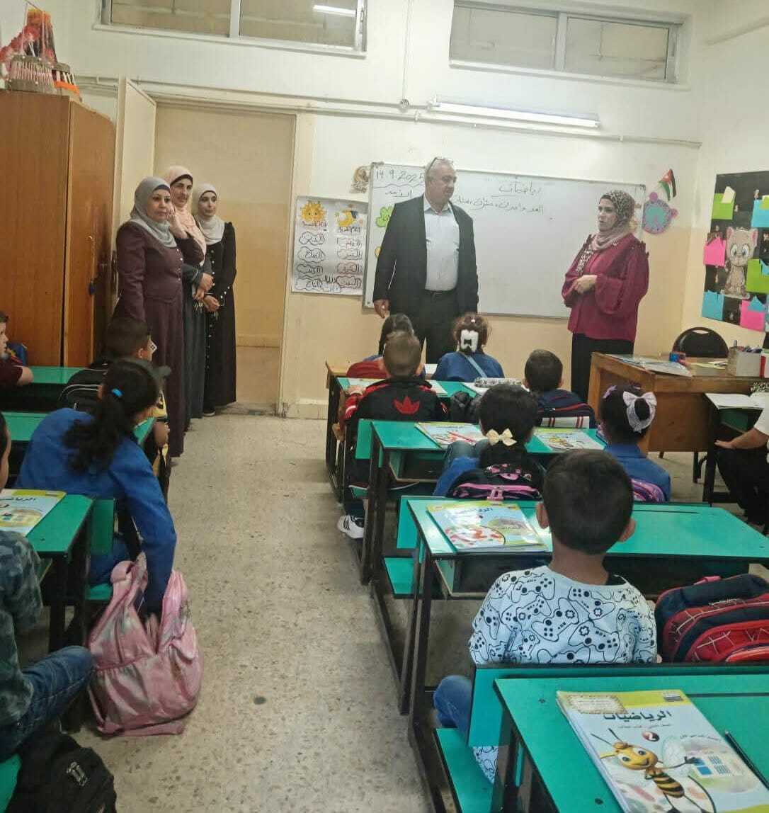 مدير الشؤون الإدارية والمالية يتفقد سير العملية التعليمية في مدرسة خديجة بنت خويلد الأساسية