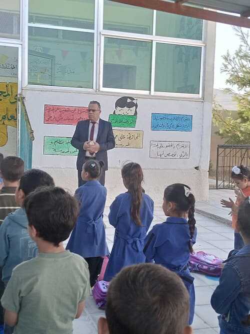 في اول يوم دراسي للمبنى الجديد لمدرسة الربة الثانوية للبنين .. بني عطية تشارك طلبة المدرسة فعاليات الطابور الصباحي