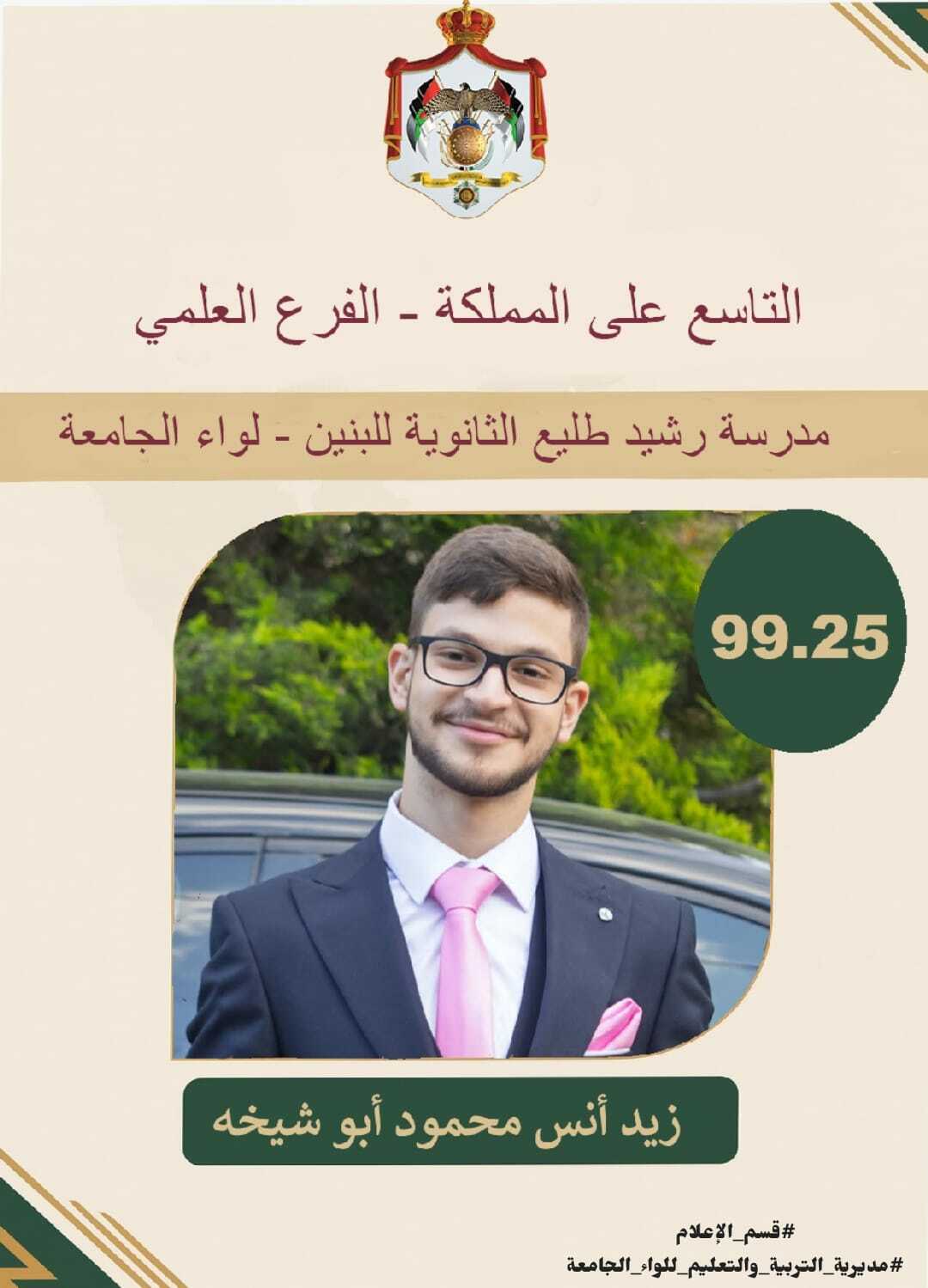 زَيْدُ أَبُو شِيخَة… تَاسِعُ المَمْلَكَةِ في العِلْمِيِّ: التَّفَوُّقُ لا يَأتِي صُدْفَةً، بَلْ هُوَ ثَمَرَةُ شَغَفٍ وَالتِزَامٍ رَاسِخٍ