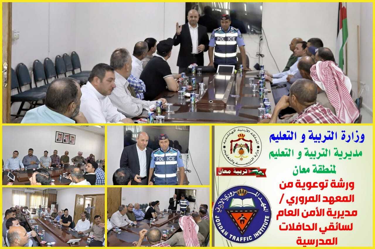 الحباشنة يتابع الورشة التوعوية المتخصصة من المعهد المروري الأردني لسائقي الحافلات المدرسية في تربية معان