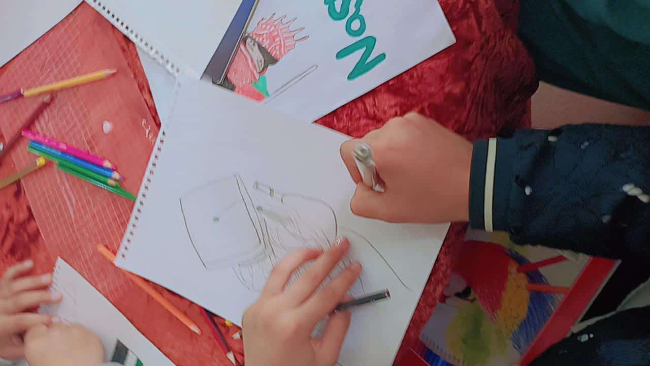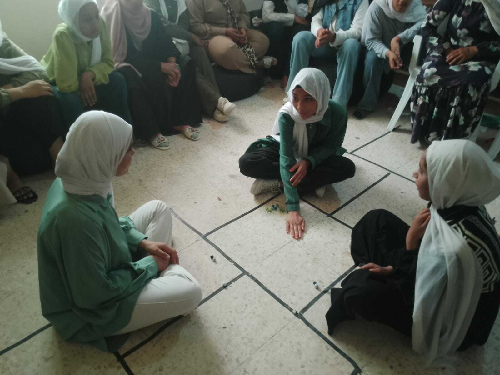 ورشة فنية في مركز شباب وشابات ذات راس لتنمية مهارات الرسم لدى اليافعات